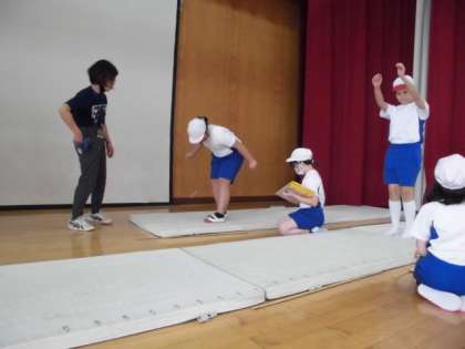 今日は、ソフトボール投げ、立ち幅跳び、長座体前屈、上体おこし、反復横とびの測定をしました。次は、握力やシャトルランにチャレンジです。