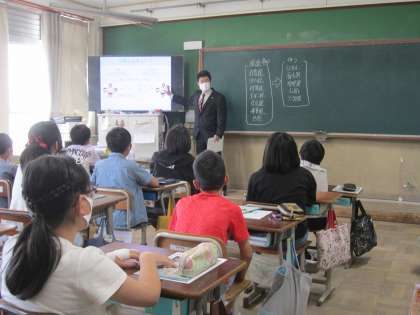 租税教室では、税理士の方に来ていただき、税の使い道や税の種類などについて学習しました。