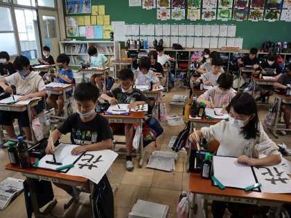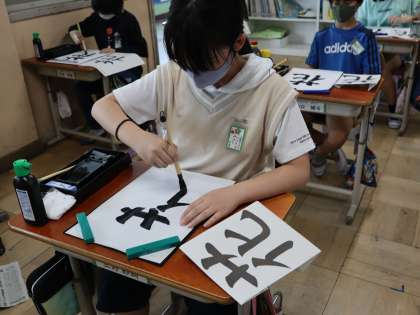 4年生の初めての毛筆「花」