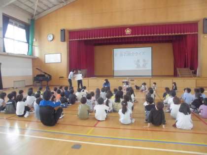2年生となかよし学級の子どもたちの交流会がありました。なかよし学級の子どもたちは楽しいクイズをしてくれました。2年生はお返しに『きっとできる』を歌いました。最後に、みんなで一緒にジャンボリミッキーを踊りました。交流会をきっかけにして、これからもたくさん遊んでほしいと思います。