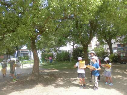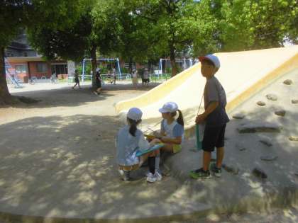 総合的な学習の時間「川岡東探検隊」の様子です。