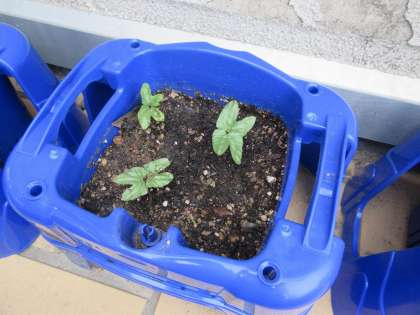 週明け、学校に行くとあさがおの芽が顔を出していました。