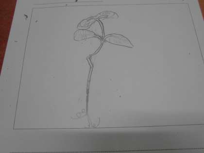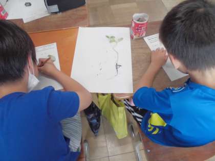 植物は、「根」「くき」「葉」からできていること、初めに出てきた葉を「子葉」ということをみんなで確認しました。
