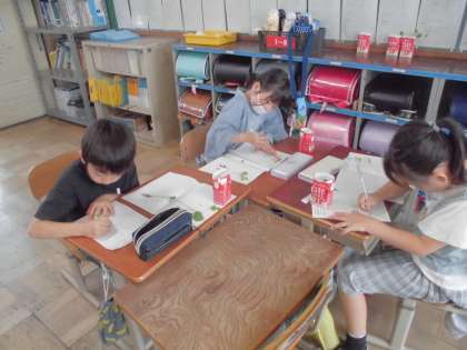 「これって何?」「葉っぱじゃなくて葉って言うねんで。」と思い思いに気づいたことを話しながらの観察でした。