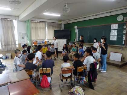 今日は各グループごとに集まり、グループメンバーの自己紹介やいす取りゲームなどをしました。6年生が司会をして、みんなが楽しく遊べるようにリーダーシップを発揮してくれました。さすが6年生!
