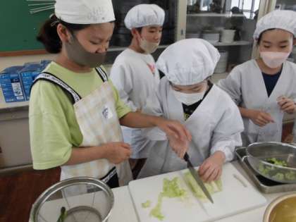 ピーラーで皮をむいたり、包丁を使って同じ大きさに切ったりしました。