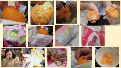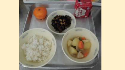 1年生にとって初めての小学校給食での冷凍みかん。