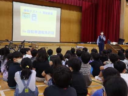 西京警察署の方に来ていただき、自転車の交通ルールについてお話がありました。