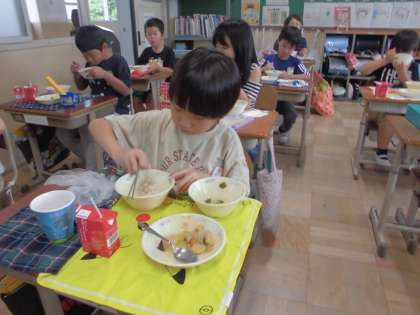 今日の給食は『好きな給食アンケート』を取れば1位に選ばれそうなぷりぷり中華いためでした。うずらたまごを上手にお箸を使いながら、おいしそうに食べている子どもたちの姿がありました。明日は平天、デザートにういろう付き。来週の木曜日はにしんなすと、栄養満点のメニューが続きます!楽しみですね!