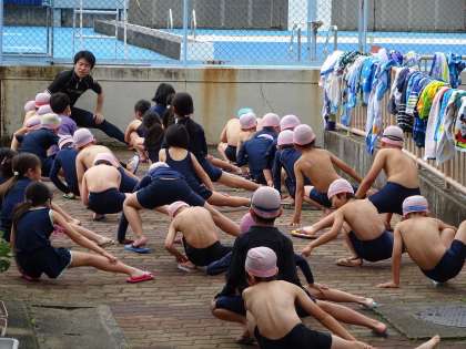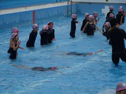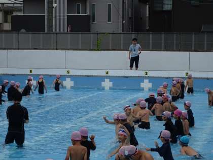 しっかり準備体操から行い、水の中を歩いたり、大の字で浮かんだり、2年生のみんなは水あそびを楽しんでいるようでした。