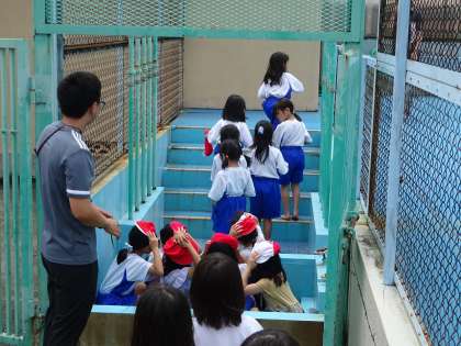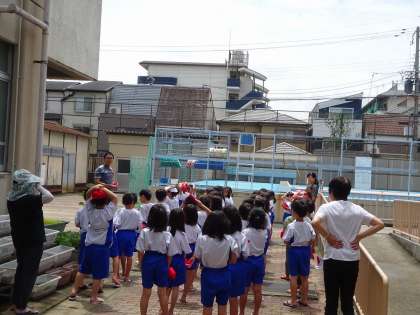 今日は、明日の水遊びの学習に備えて、プールの入り方やルールについて確認しました。