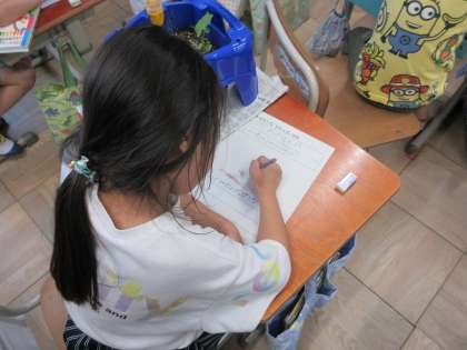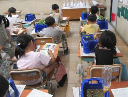 今日は、「あさがおの本葉」をテーマに観察カードを書きました。