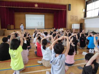 なかよし学級の友だちが考えてくれた自己紹介クイズに答えたり、5年生が企画した遊びをしたりしました。