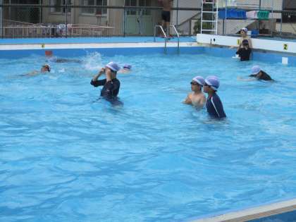 6年生では今年度最初の水泳の学習をしました。