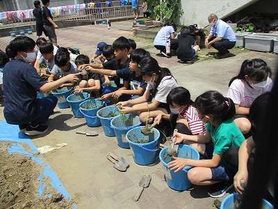 地域の農家 清水さんから栄養たっぷりの土も提供してもらいました!