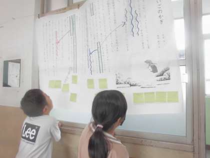 一人ひとり感じ方が違うことを楽しみながら、友だちの書いたものを見ていました。