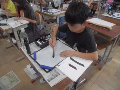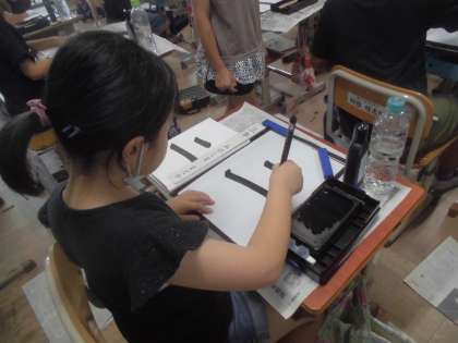 「とん、すー、とん」といった始筆、送筆、終筆の流れを確認しながら取り組みました。