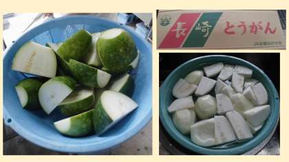 冬瓜は分厚い皮をむき、種を取ってから調理します。