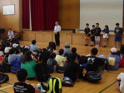 6年生が修学旅行に出発しました。校長先生のお話からは、「当たり前のことを当たり前に」することで自分たちも出会った人たちも気持ちよく過ごすことができます。修学旅行の意味を考え、行動することの大切さを話されました。出発式では、司会の子どもたちのきっちりとした態度に、これからの6年生「創造」の旅が楽しみです。
