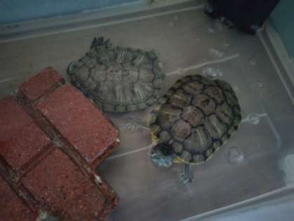 6年生の元気な声が聞こえない教室の廊下には、お留守番をしている3匹がいました。みんながいないのか、通りかかるといつも元気に動くカメさんですが、今日は首をすくめて元気がなさそうです。おそらくみんながいないことを寂しく思っているのでしょう。
