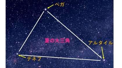 こと座のベガ,わし座のアルタイルとはくちょう座のデネブをむすぶと「夏の大三角」という星座になります。