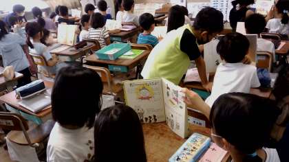 1年生と一緒に七夕のお話を聞き、自分たちで選んだ絵本を読聞かせをしました。