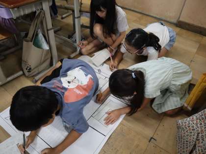 班でチームワークを発揮して、素敵な新聞を作っています。