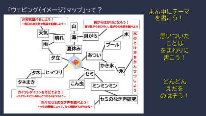 初めての経験なので,まずは3年2組の皆で「夏」の単語からマップを作ってみました。