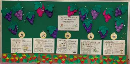 給食カレンダーを飾っている掲示板とサービスホールの掲示板も新しくなりました。