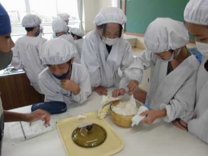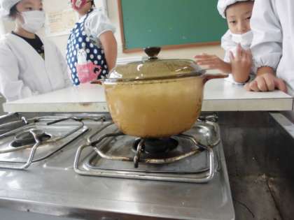 透明のおなべで、ご飯がどのように炊き上がっていくのか観察しながら、実習を楽しみました。