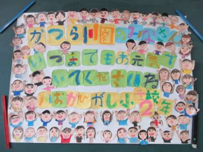 もうすぐ敬老の日です。それにちなんで、川岡東小学校のすぐ近くにある桂川園のみなさんに向けて、2年生からメッセージビデオを贈ります。今日は、2年生みんなで撮影しました。とっても元気な歌声が届くといいなあと思っています。