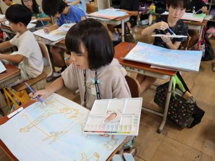 各クラス、違う本を読み、想像を広げ、絵におこします。