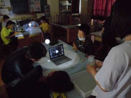 太陽の光をライト、月をボールに見立てて月の位置を変えるとどうなるか試しながら実験をしました。
