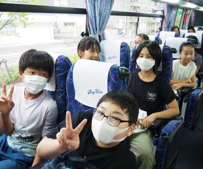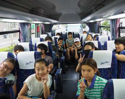 バスの中では自分たちでゲームをしたり話をしたりして楽しく過ごしていました。