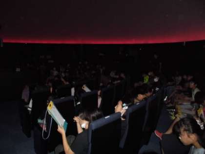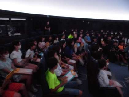まずは、プラネタリウムで星や太陽の動きについて学習しました。学校ではできない経験ができ、学びを深めることができました。
