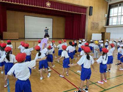 体育では、今日から1年生全体でダンスに取り組み始めました。