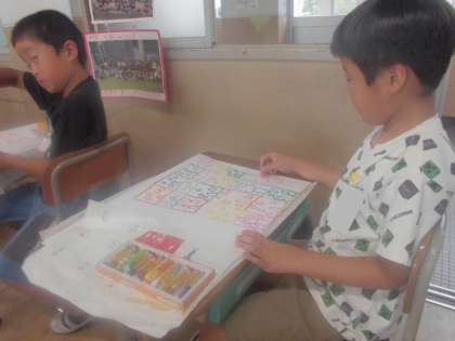 図画工作科ではお話の絵の作成を進めています。各クラスで選んだ本をもとにして、聞いた文章からいろいろな絵を想像して描いています。(だいだい色・白色のクレパス、おうど色のクーピーが短くなってきていますので、減り具合を確認して、購入いただきたいです。)『ふしぎなたまご』や1年生のときに習った描き方を使って完成させたいですね!どんな絵が完成するのでしょうか・・・?