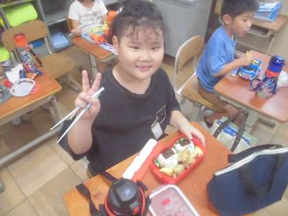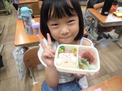 今日のお昼はお弁当。2時間目ごろからすでに「お弁当楽しみ!」とうきうきしていました。
