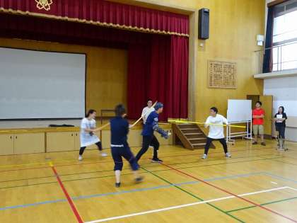 不審者が校門より侵入しようと粗暴な言動をとった時に、どのように対応するのかを実技研修しました。