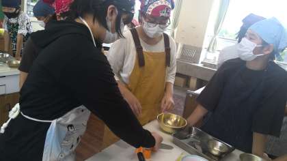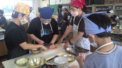 今までの実習と比べると材料が多く、また切るものも多くありましたが、協力して手際よく調理していました。