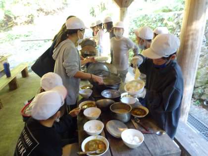 どの班もおいしそうにカレーライスを作ることができました。みんなで協力して作り、自然に囲まれて食べるカレーライスは、よりおいしそうに見えました。