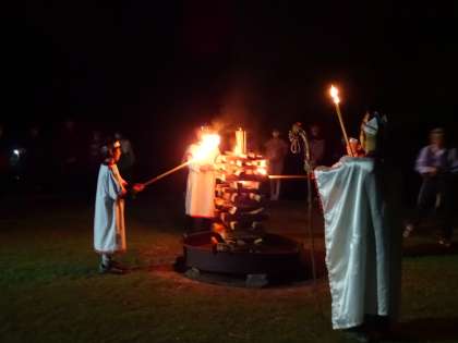夜に活動するので、みんな少し興奮状態でしたが、キャンプファイヤーが始まると、それぞれの出し物や遊びに楽しく取り組んでいました。