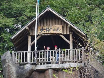 今日の活動予定だった「冒険の森」は、昨夜の雨のため、安全面を考え、中止となりました。冒険の森の入り口にある「大樹くん」という高いところまで登り、写真撮影をしました。冒険の森の活動に代わりに「館内パズル」をすることになりました。