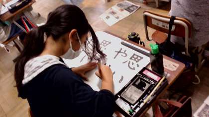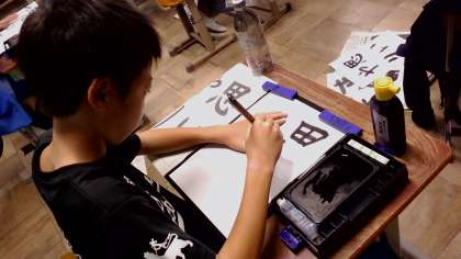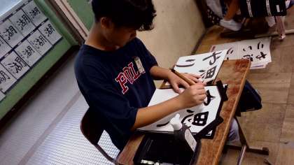書道半紙に4文字を書くことに苦戦をしていましたが、後半は文字の大きさに気をつけて書くことができました。
