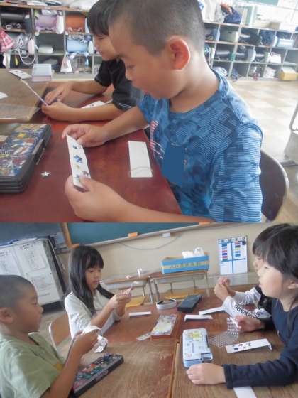 運動会のダンスでつけるリストバンドをつくりました。子どもたちの一生懸命で楽しいダンスに花を添えてくれるように、自分たちでシールの配置を考えて貼っていきました。1人1人オリジナルです!さっそく、帰りの会のダンスでつけていました。練習は明日で最後になります。最高のダンスにしましょう!