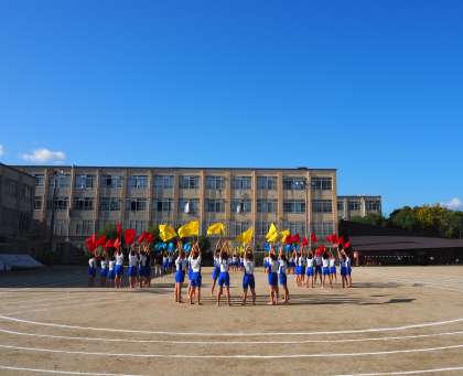運動会まであと2日!今日も天気がよく、フラッグ・組体操日和でした。
