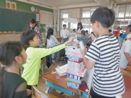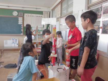 生活科の単元は『あそんでためしてくふうして』に入っています。お家にあったもので、たくさん使えそうなものを用意していただきありがとうございました。つなげたり、つんだり、ころがしたり。あるものでどんな動きができるかを確かめながら、楽しんで活動しています。最終的には、いろいろな動きを組み合わせたおもちゃを考える予定をしています。どんなものができるのか楽しみです!