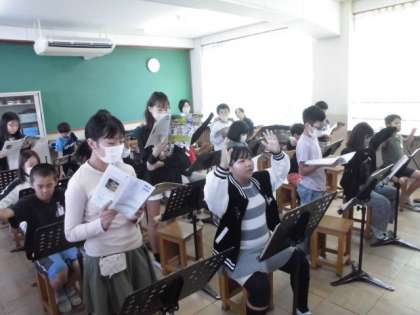 和音の移り変わりを感じ取りながら、「こげよマイケル」を歌いました。