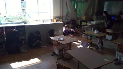 指示通り教室の隅にかたまり、一切声を出さずに、とても賢く行動できていました。