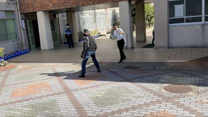 不審者が校門より侵入しようと粗暴な行動をとるため、教職員が対応する・児童は安全な場所に避難することをねらいとして実施しました。今回は、西京警察署の方にも来ていただき、ご協力いただきました。ありがとうございました。